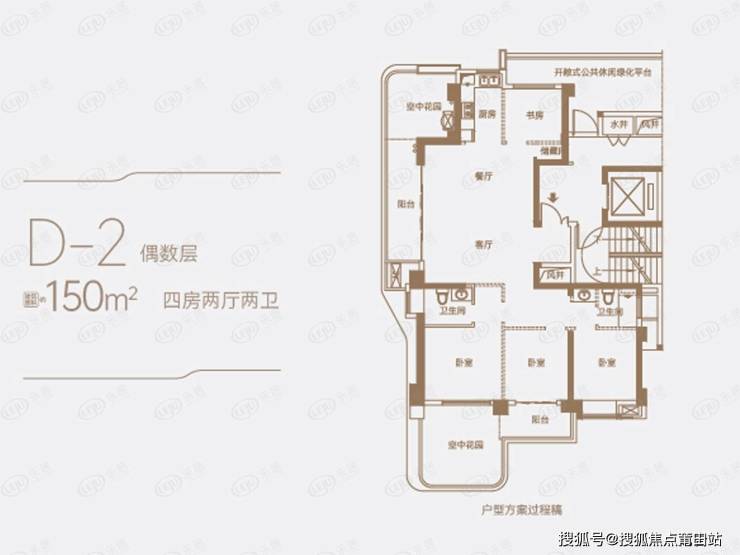 户型直接影响居住体验,较好的采光、通风、较短的归家活动动线,动静分区,都将提升居家生活体验。如下图D-2户型