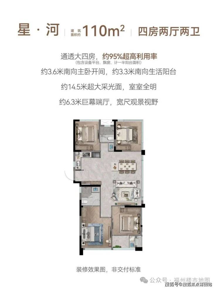 110平四房两厅两卫产品(28套):楼高15层,东端头户型,公摊21%;均价30956元/㎡,楼层差200-300元/平左右,备案区间价格2.86-3.24万/㎡,总价318-361万/套。