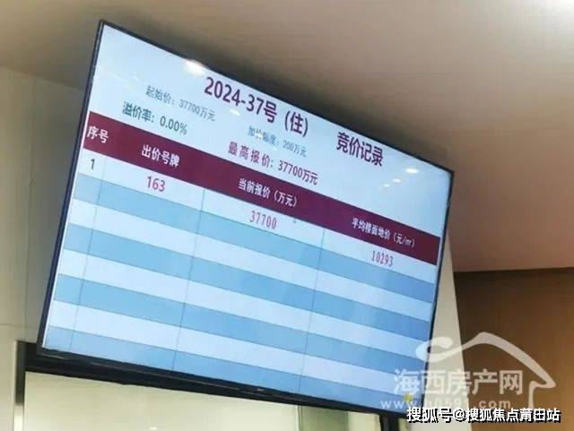 海西房产网(微信公众号:fjhxfcw)通过查询福州土地拍卖记录获悉,2024年9月29日,经过1轮竞价,163号竞买人福州建总地产有限公司 以底价3.77亿竞得福州宗地2024-37号,楼面地价10293元/㎡。