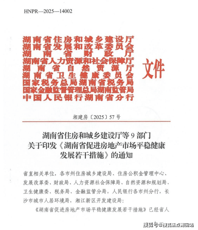 湖南省住房和城乡建设厅等9部门关于印发《湖南省促进房地产市场平稳健康发展若干措施》的通知(以下简称“湘十条”)。