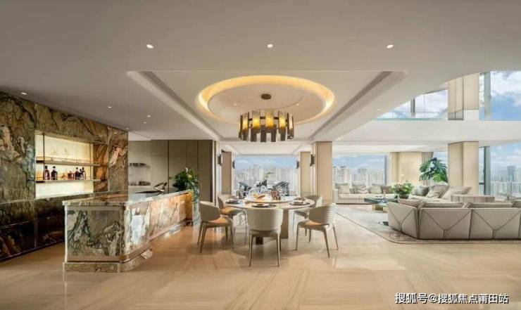 其中,硬件配置尽显品质,厨房配备嘉格纳10件套,空间点缀六大世界级珍稀奢石,卫浴采用劳芬独立浴缸搭配汉斯格雅五金,更配备32寸中控屏全屋智能系统与4.6m×2.4m电动遮光帘星空泳池;软装设计延续高阶审美,精选意大利Visionnaire、Minotti等10大欧洲进口品牌,从风格到搭配尽显精致格调。