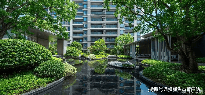 中轴景墙点缀普拉达绿奢石,与潺潺流水相映白日折射天光云影,入夜流转星河微芒周边名贵黑松造型清逸挺拔,四季长青不败作为园中的点睛之木