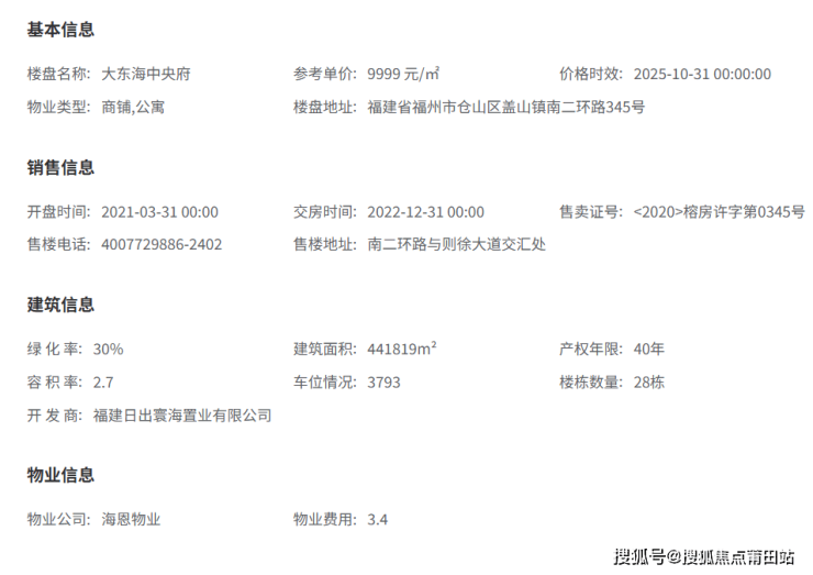 开发商大东海集团为福州本土企业,曾开发大东海江山府、大东海中央府等多个项目。