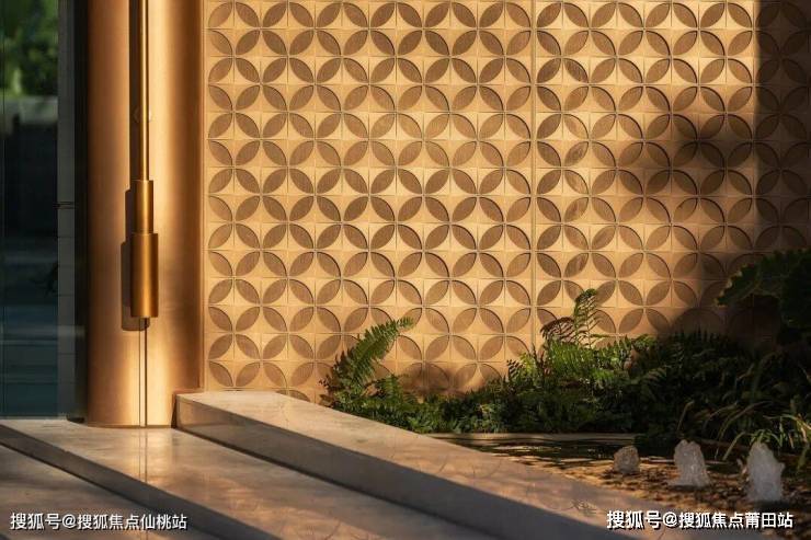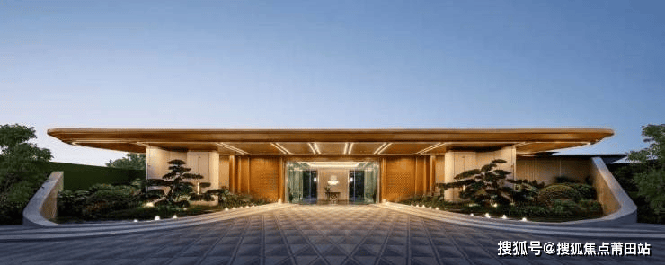 项目从入口便彰显高端质感:中轴对称的门廊式大门,采用白+香槟金经典色系,搭配罗汉松与石材景墙,营造出豪宅级的酒店式仪式感,一眼便能感受到社区的高端定位。