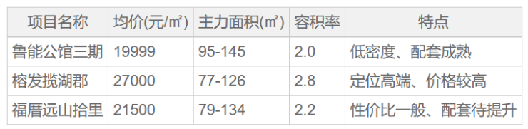 与周边同类项目相比,鲁能公馆三期在价格、产品力和配套方面具有综合优势。