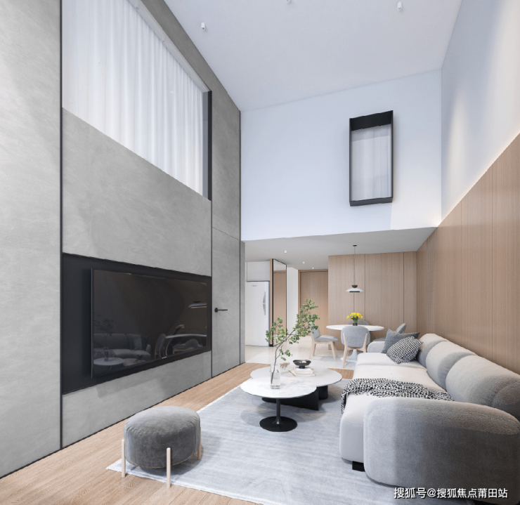 (效果图)约4.5m挑高,超高得房率;功能分区合理布局,动静分明;双层空间大有乾坤,生活/办公随心切换。