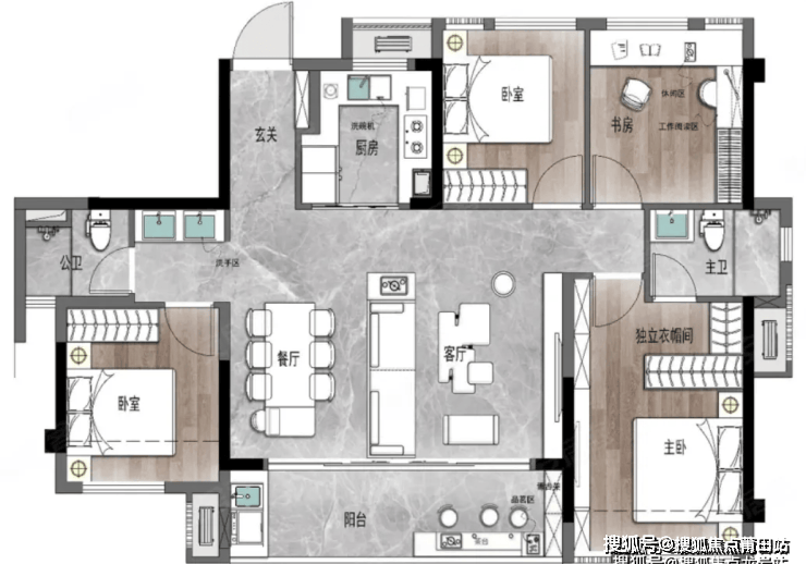 这个户型布局和左海的108平,基本一致,依然是同质化的产品。