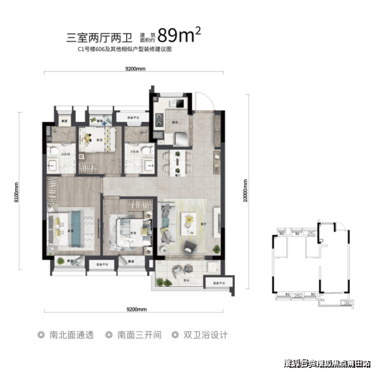 项目精研当代年轻人生活模式,主输出建筑面积约65-115㎡户型产品,打造完善收纳系统,预留大量柜体空间,部分户型设计壁龛。