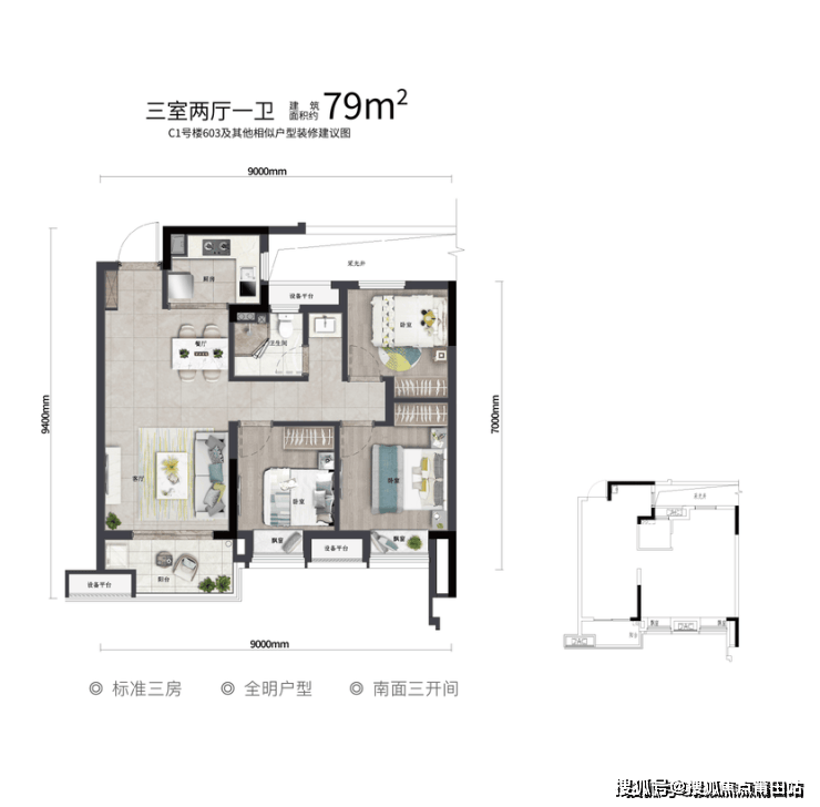 产品户型:建筑面积约65-115㎡二至四房