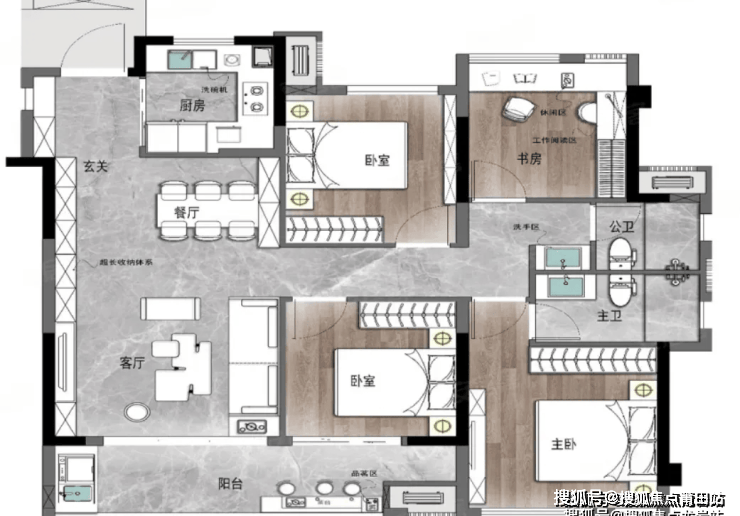 这个户型布局和左海的108平,基本一致,依然是同质化的产品。