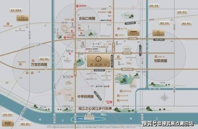 “建发·瑞云”北面2公里五一广场,东面300米福州南公园,西面500米茶亭公园,南面1.6公里闽江之心、上下杭。
