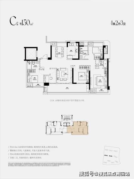 匠心户型设计:项目精心规划了建面约 130 - 170㎡的多种户型,满足不同家庭结构和居住需求。以 170㎡户型为例,四房朝南的采光布局,让室内阳光充足;餐厅、客厅与厨房巧妙组合,空间利用合理,生活动线流畅;明卫设计保证了卫生间的通风与清洁,长阳台则进一步拓展了生活空间,可用于休闲观景、种植花草等,提升居住的舒适度与品质感 。同时,所有户型均采用 2T2 板楼设计,一梯一户,独梯南北双阳台,保障了业主的私密性与尊贵感,且得房率较高。