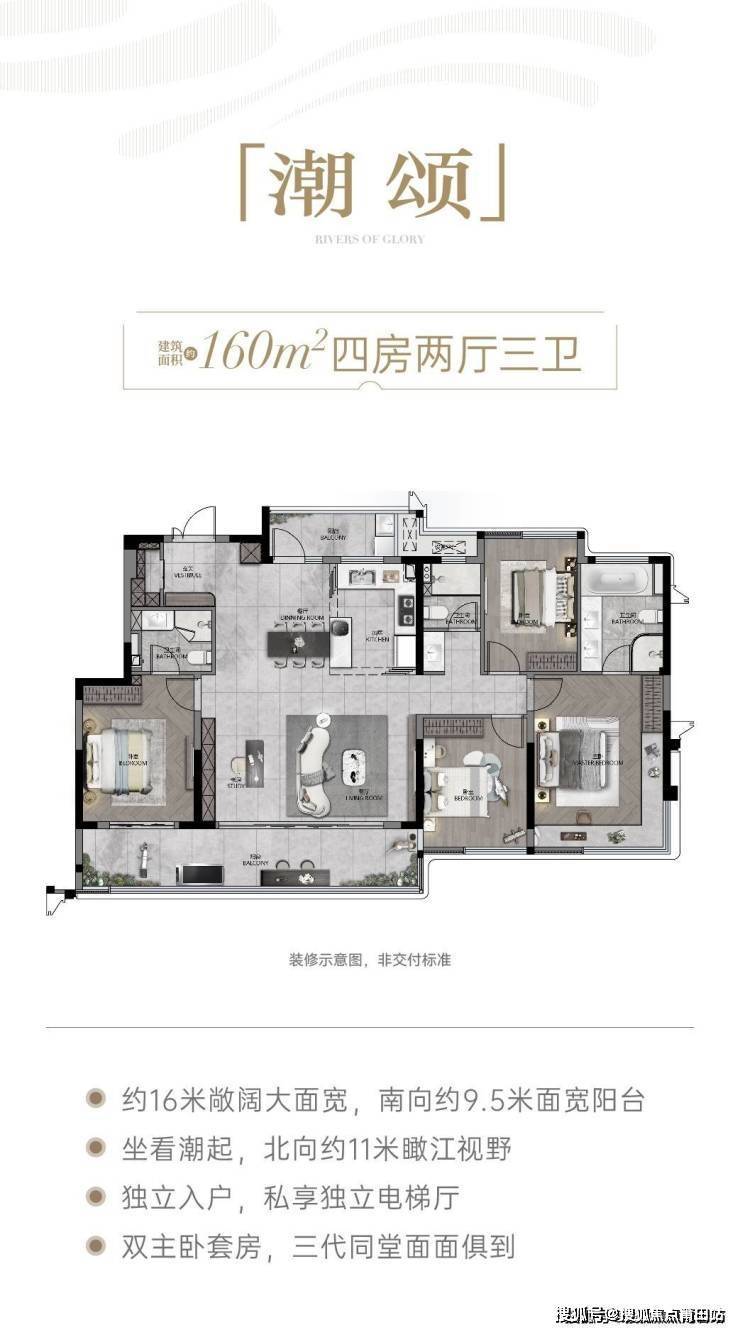 4、本宣传资料涉及户型仅供参考,部分高楼层可看江,具体以实际户型为主,其装修布置、家电家具、陈设等非交付标准,均不属于交付范围;不同户型的面积尺寸、功能布局、空间分割、门窗、管井形态位置等均有不同;相同户型因楼栋、楼层、单元等差别,局部结构门窗、洞口、管井、面积等也可能不同,具体以政府部门最终审定的图纸和销售合同为准。