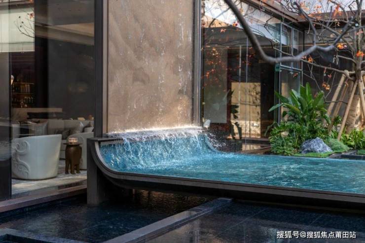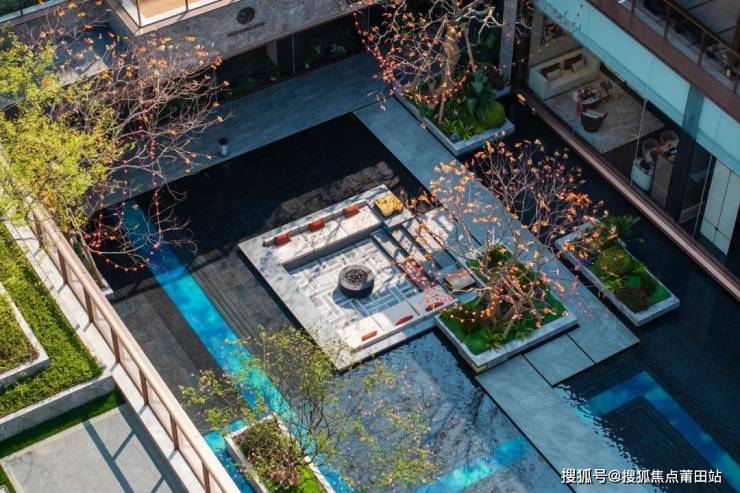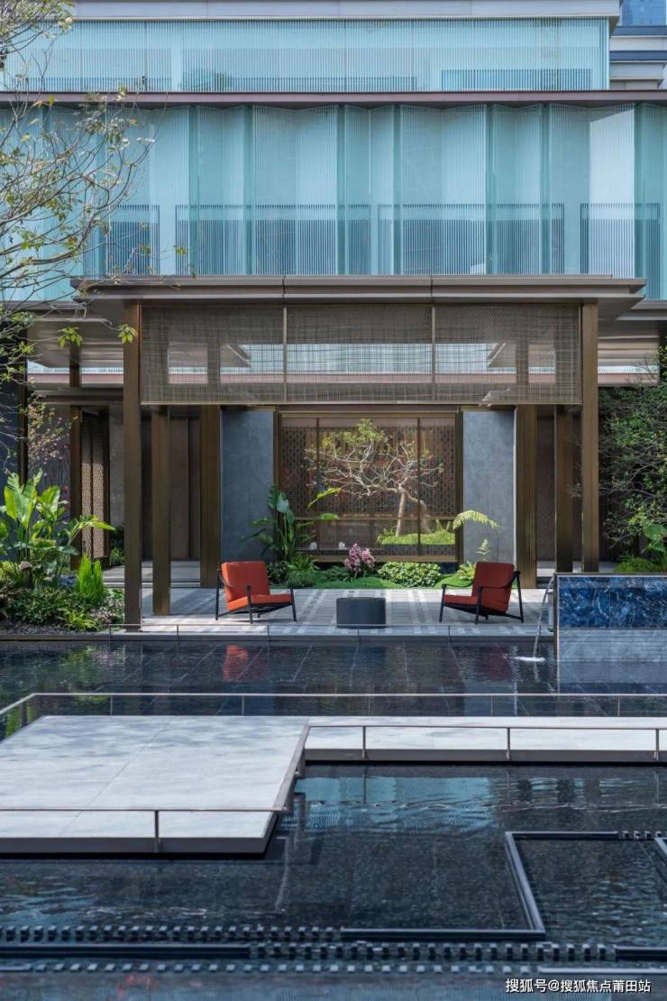 ▲围绕着流水庭院的座椅,榕发·锦珹大观,福州,实景图