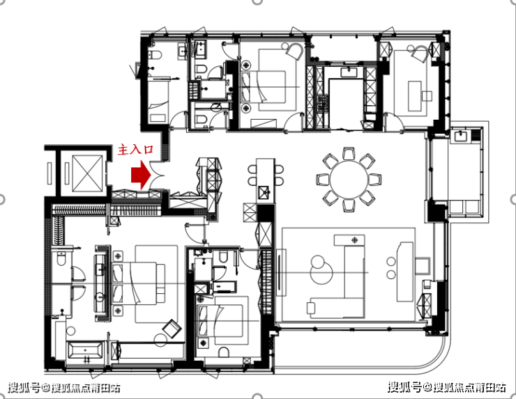 【4】奢华户型设计:85㎡社交化客餐厅、归家礼仪轴线、专梯入户、8.3米超面宽阳台、7米面宽旭格提升推拉门、全套间设计