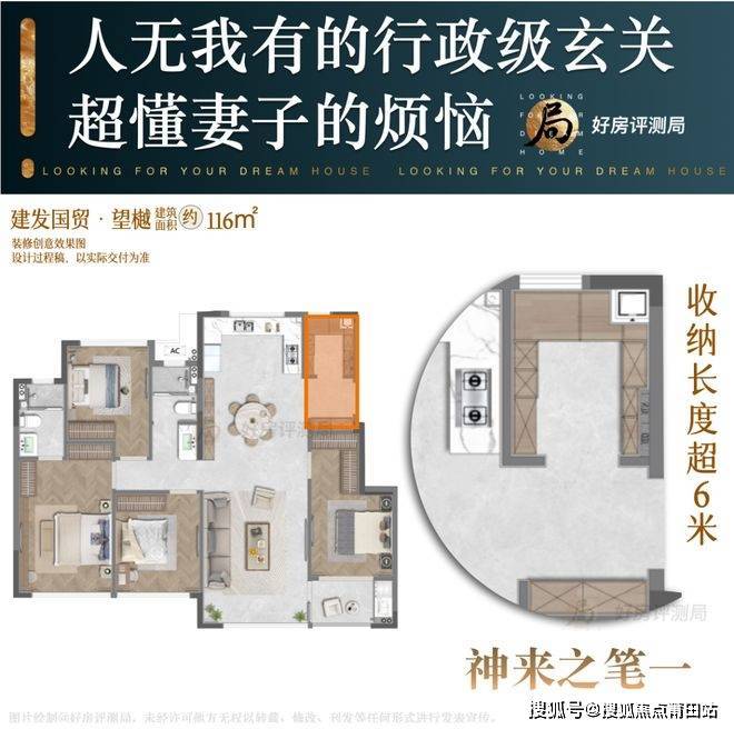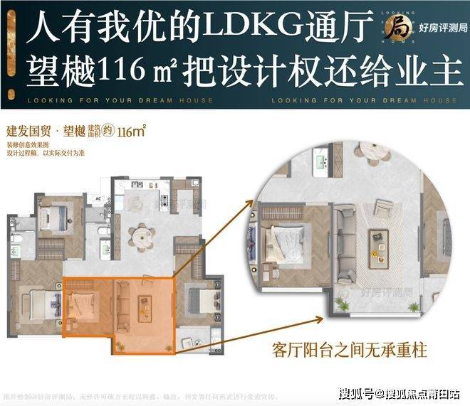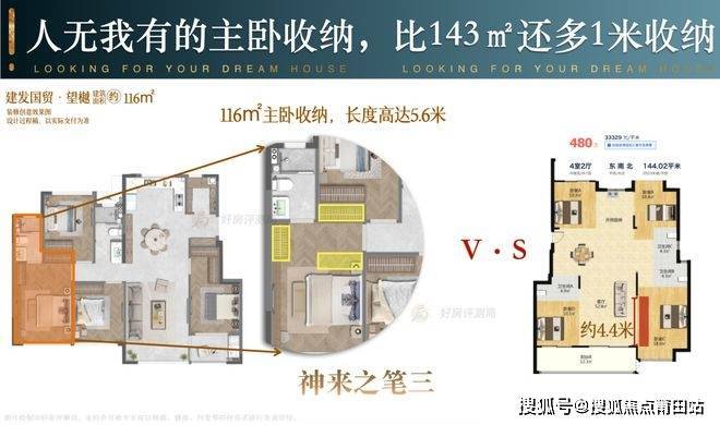 以望樾116㎡为例,得房率突破性达到100%,相比同面积的老款高层,差距整整拉开29㎡。