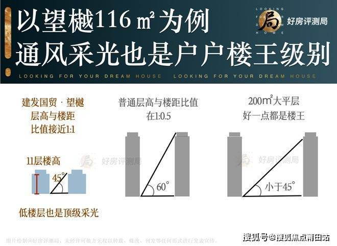 纯洋房的楼距楼高必接近1:1,高层通常是0.5:1,可以说楼距舒适度提升50%。