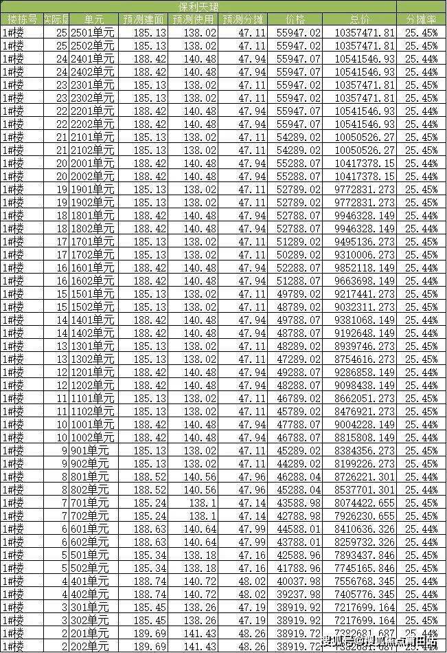 本次取证均价为4.8万,具体一房一价表如下: