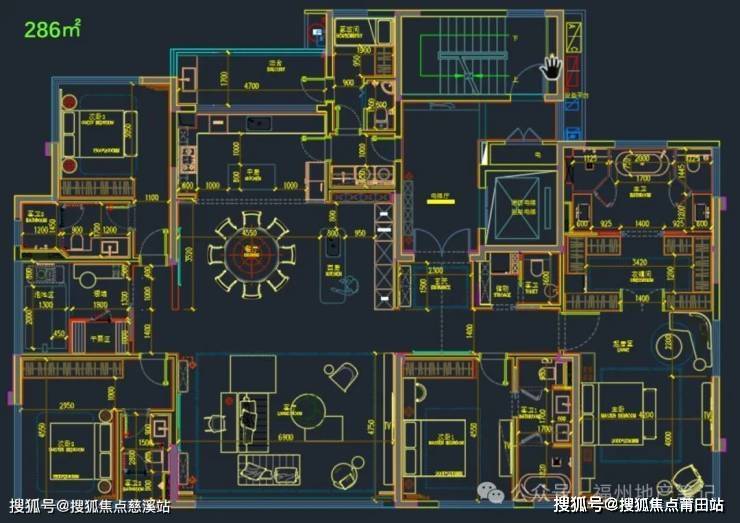 317㎡:4+2房3厅6卫,2T1,双入户,布局与286㎡类似,客厅面宽达8.1米。