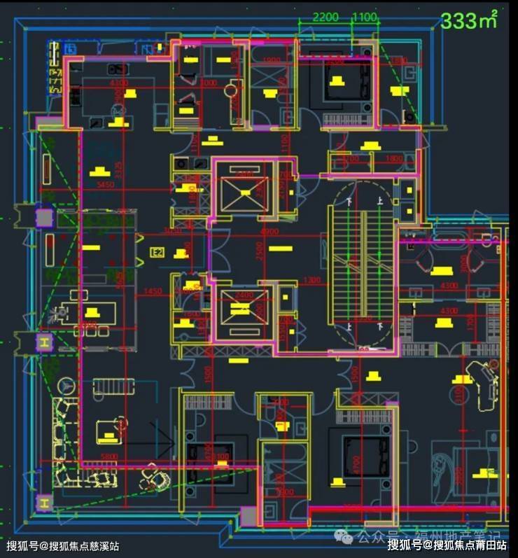333㎡:4+1房3厅6卫,2T1,双入户,LDKG均设置在西侧,可瞰中庭景观;主卧空间超过55平,居住舒适度极高。