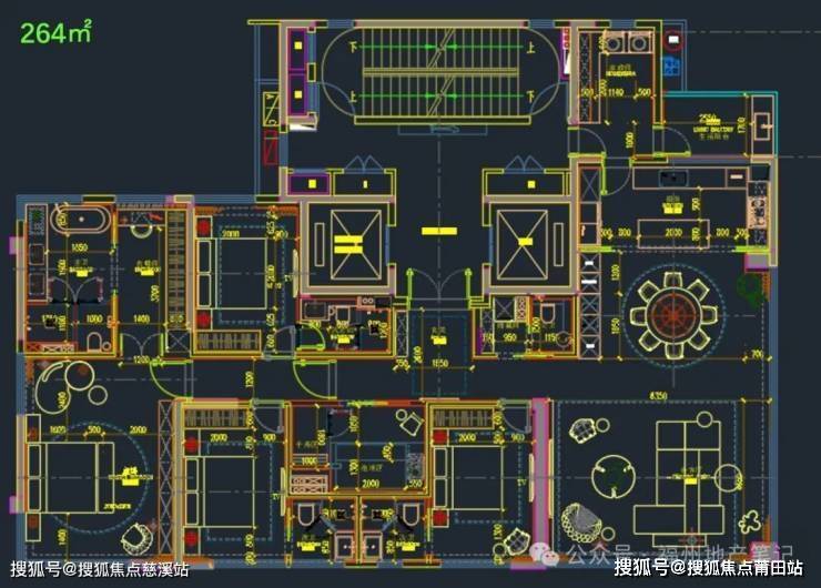 269㎡:4+1房3卫,2T1,双入户,动静分区,东区设置在东面,餐客厅设计270°L型采光面,视野更佳。