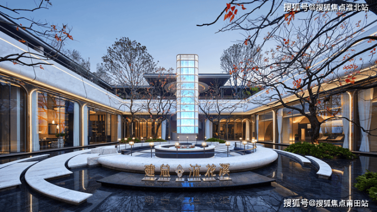 超70米宽显赫门庭,超尺度潘多拉奢石光幕,社区主入口巧妙融合“天圆地方”的设计哲学,百万级朴树树王与玉璧般的水景圆盘交相辉映,营造出如诗如画的庭院景观,成为社区空间中熠熠生辉的视觉中心。