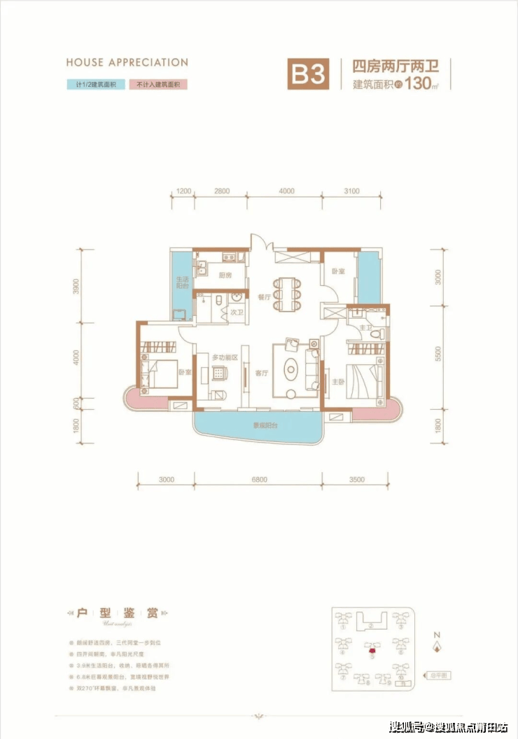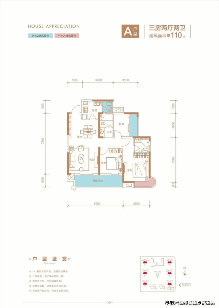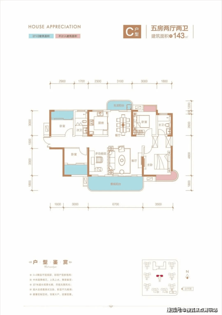 【户型亮点】N+1灵动幻变户型、270度转角飘窗、南北双阳台、3.05米超高层高