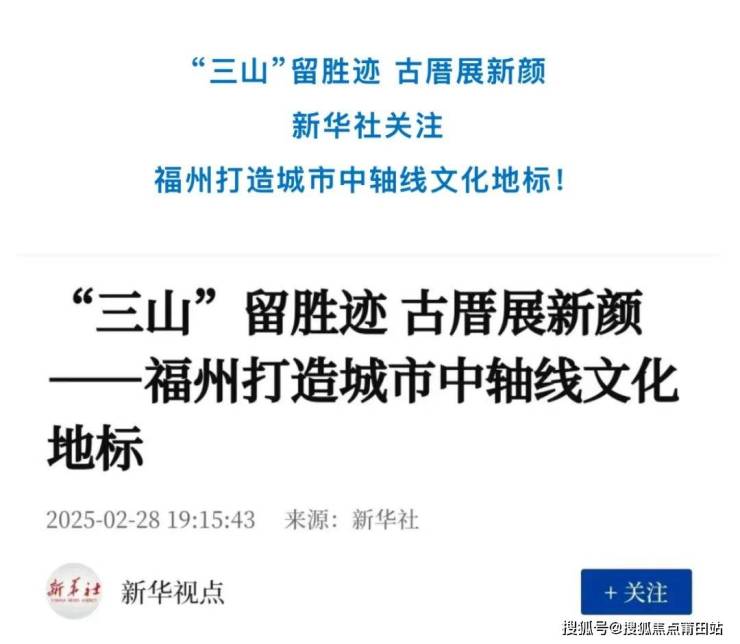3月1日,福州市人民政府的官方微信上,转载了新华社的一篇作品——福州打造城市中轴线文化地标。