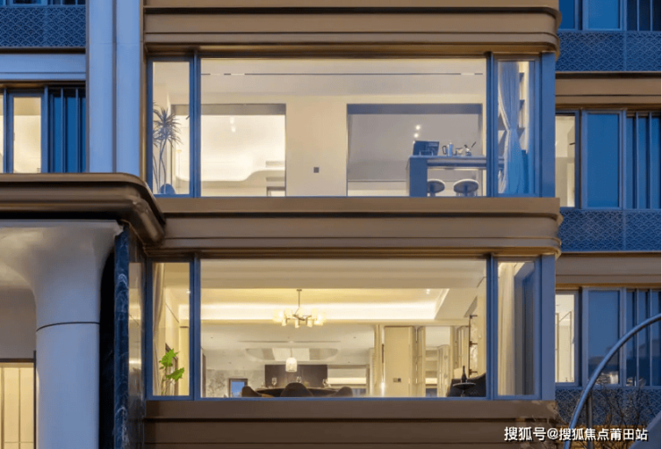 阳台位置引入大面积的落地窗系统,采用整面三层夹胶中空玻璃,是福州顶级豪宅的同款。