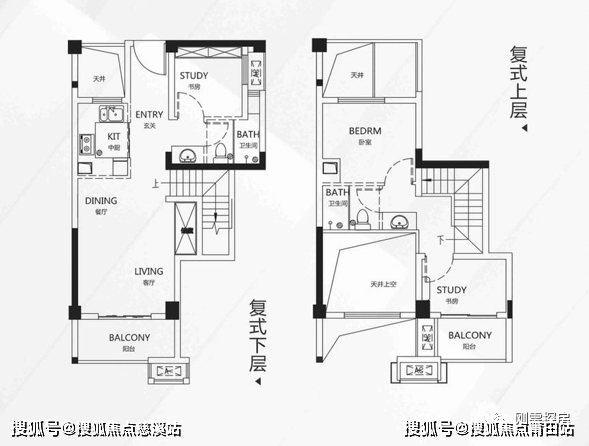 95平米:四房两厅两卫,复式,位于一号楼中户,楼下一间房,楼上靠倒板做三房,虽然靠复式能做到一定的得房率,不过主要硬伤依然是存在暗卫,同时虽然是两个卫生间,不过依然无法在主卧搭配,同时复式户型导致的面宽窄,空间感一般。