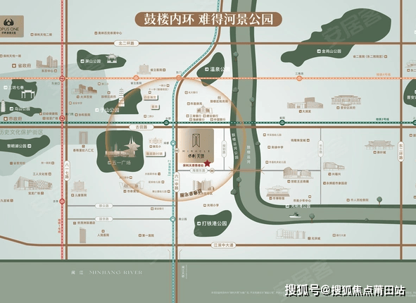 配套齐全:医疗方面,2.5 公里范围内有附一医院、协和医院等三甲医院。教育方面,周边有鼓五小、闽江学院附中等学校。休闲方面,独占鼓楼城市内河,于山公园、南公园等多个公园环绕四周。