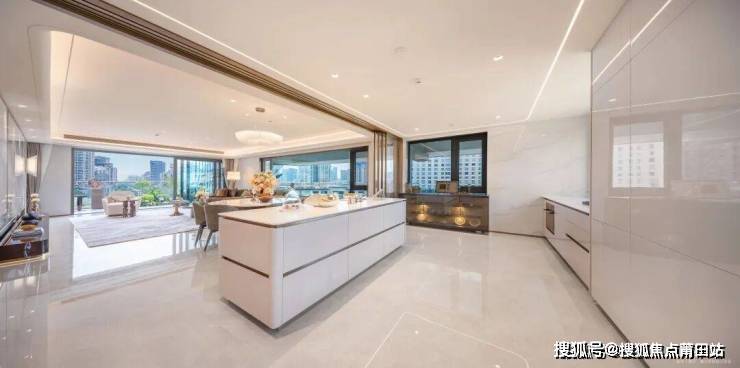 先生在临窗设置的家庭办公区处理工作,抬眼便是晋安河公园的盎然绿意;太太在中西厨岛台上准备餐点,与在客厅玩耍的孩子随时互动;
