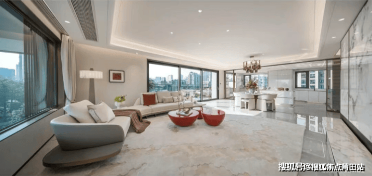 灏云通过「客厅-餐厅-厨房-露台-多功能厅」一体化设计,打破传统动静分区,形成一个超100㎡的复合型公区。这种设计让整体空间成为家族的关系场,增强了家庭成员间的互动:孩子能在露台秋千上玩耍,老人在花园种植,太太在茶室会友,先生在空中吧台小酌——每个人都有自己的场景,却又彼此相联。