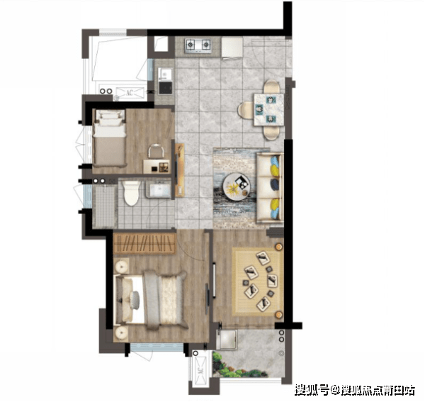 D户型 | 建筑面积约45㎡两室两厅一卫客厅连接餐厅,彰显阔绰空间感开放式厨房,明亮空间施展大厨艺主次卧带飘窗、阳台,阳光美景成为寻常