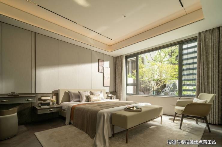 在庭院与园林的景观规划上,着重大庭小院、叠山理水的格局,通过森林氧吧、迎宾水轴、中央廊架等一环一轴两中心多节点,锻造全球隐奢酒店森居,让世界从嘈杂回归静谧。
