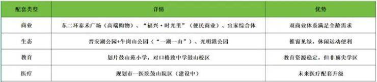 产品错位竞争:高得房率+低密设计,对比周边同面积段产品更具实用性和舒适度,瞄准改善客群痛点。