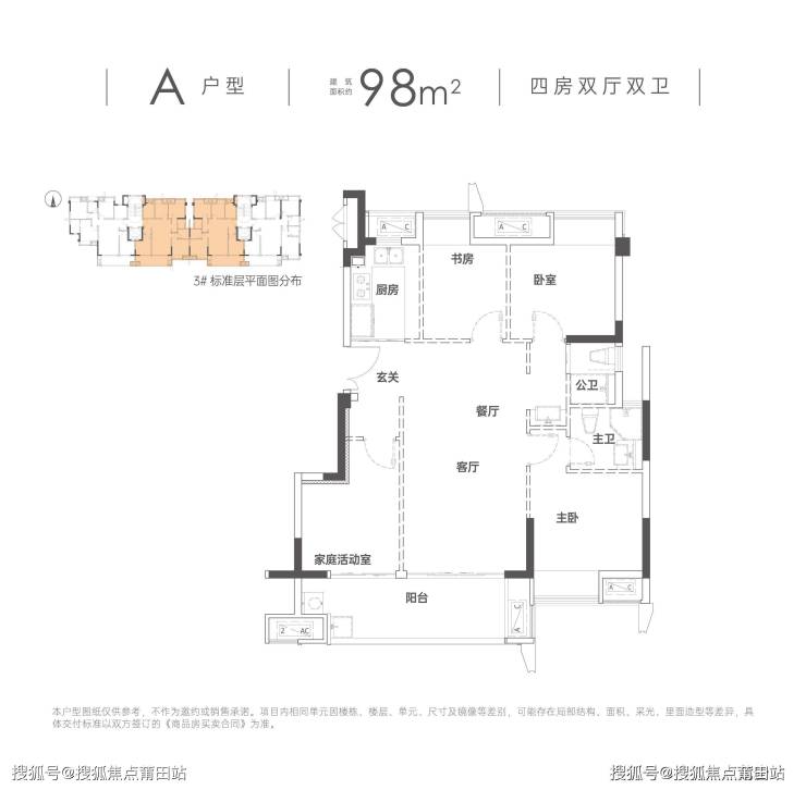 °灵动·四房户型:97-110㎡的成长型户型,全明全通透方正格局,可变四房,满足成长型家庭的各种可能,从二人世界到三口之家,从三胎时代再到三代同堂,都可以兼顾到,为人居提供全新的解决方案。