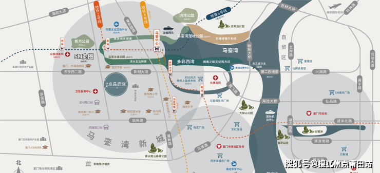 一、地理位置 厦门住宅水晶尚庭坐落于海沧马銮湾新城的核心区域,毗邻马銮湾医院,享有得天独厚的地理位置。海沧马銮湾新城作为厦门市重点发展的区域之一,拥有丰富的自然景观和人文资源,是城市发展的新引擎。该区域交通便利,距离厦门高崎国际机场仅约20分钟车程,同时靠近新阳大桥、海沧大桥和海沧隧道等快速通道,使得进出岛内外变得非常便捷。