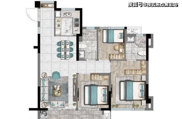 79㎡:三房两厅一卫一厨