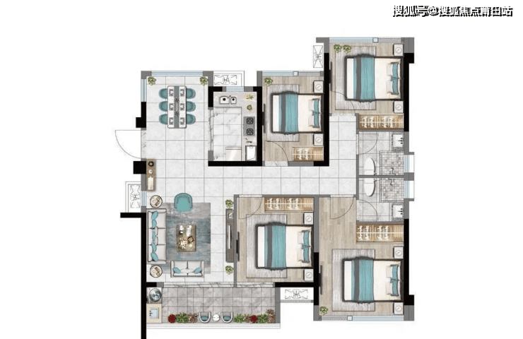 方正通透;约5.3米宽幕瞰景阳台;联通式客厅;套房式主卧,专属盥洗室、衣帽间。