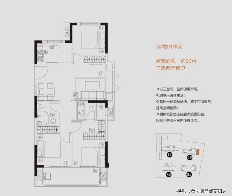 90㎡端头3房2卫2阳