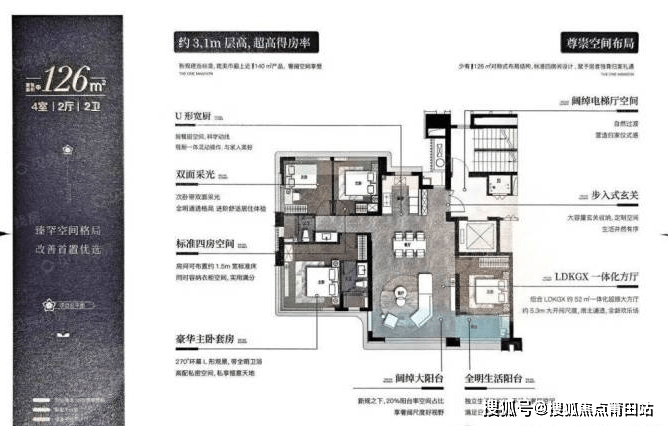 3. 产品力突出:纯四房改善定位、3.1米层高、2梯2户板楼设计、品牌精装,契合高端改善家庭需求,社区圈层纯粹;
