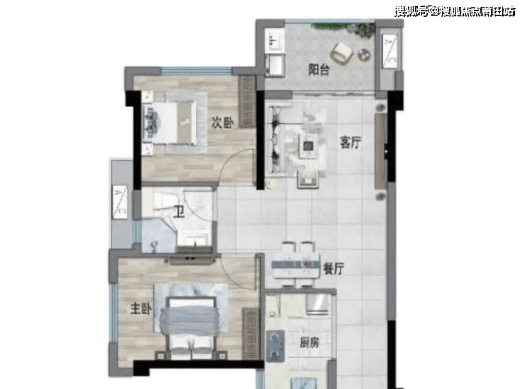 75平米:三房两厅一卫,双开间朝南,75做三房,导致客厅和卧室空间都不大,卫生间也只能做成双隔离,不过小面积三房,同时各空间都有采光,对于刚需而言还是有较大吸引力。