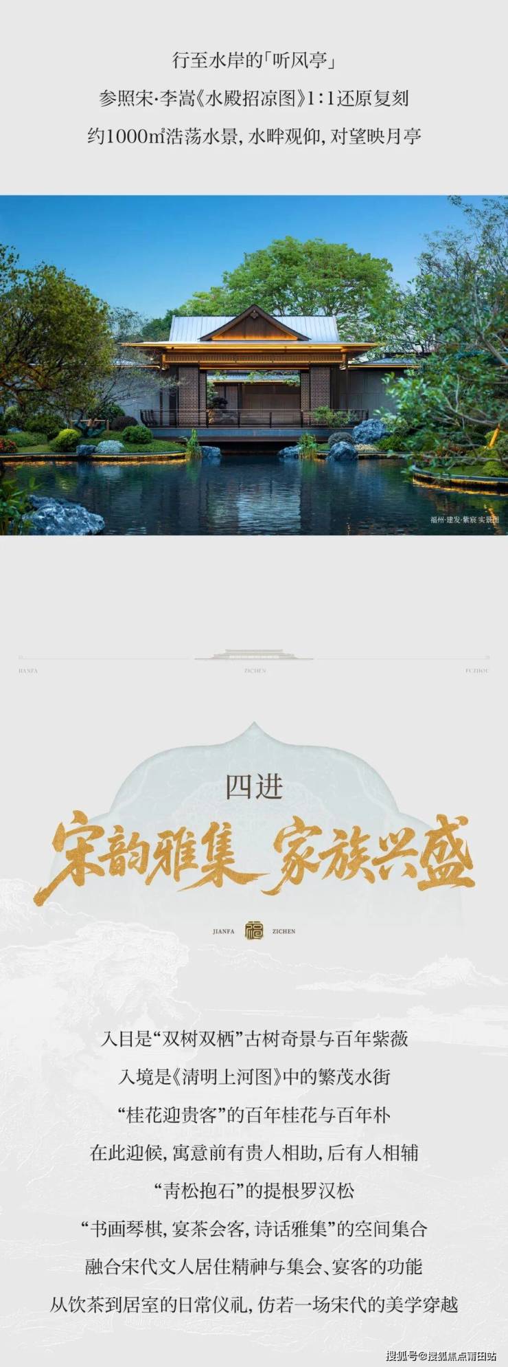 中华之美,造极于宋时,其中尤以宋画为胜建发.紫宸,以宋代美学巅峰<<千里江山图>>为框架脉络效仿宋代宫廷围合式园林的布局结构