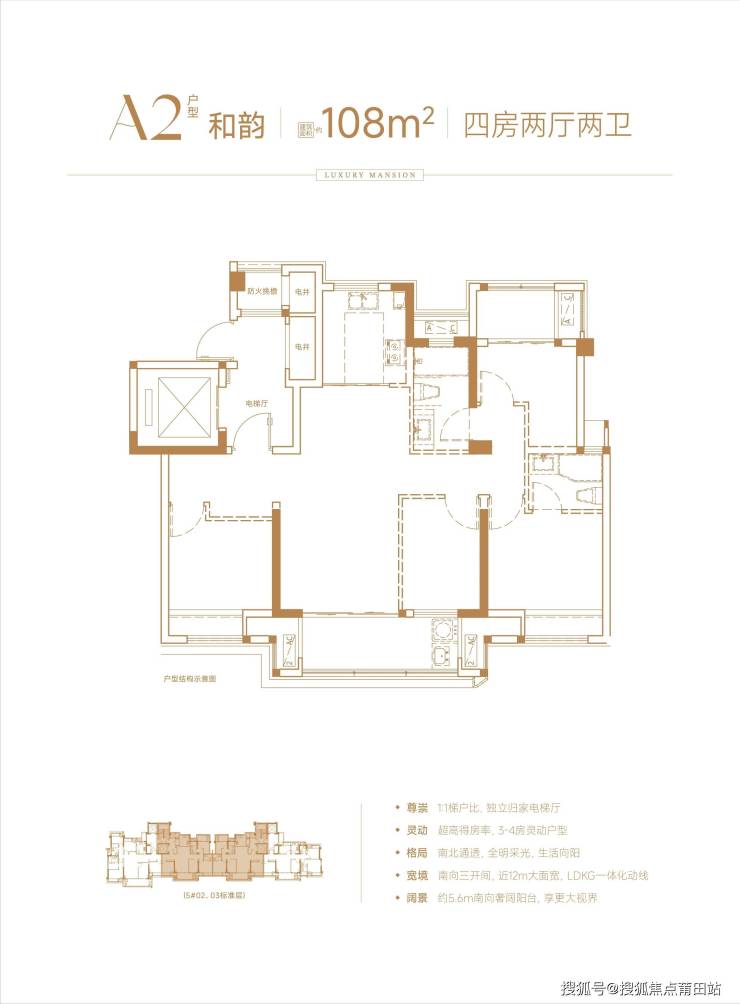 产品户型:建筑面积约108-138㎡纯板式宽境小高层