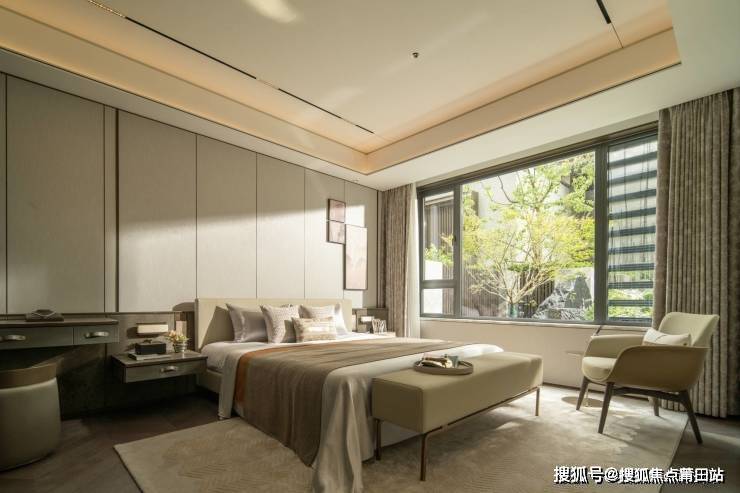 在庭院与园林的景观规划上,着重大庭小院、叠山理水的格局,通过森林氧吧、迎宾水轴、中央廊架等一环一轴两中心多节点,锻造全球隐奢酒店森居,让世界从嘈杂回归静谧。