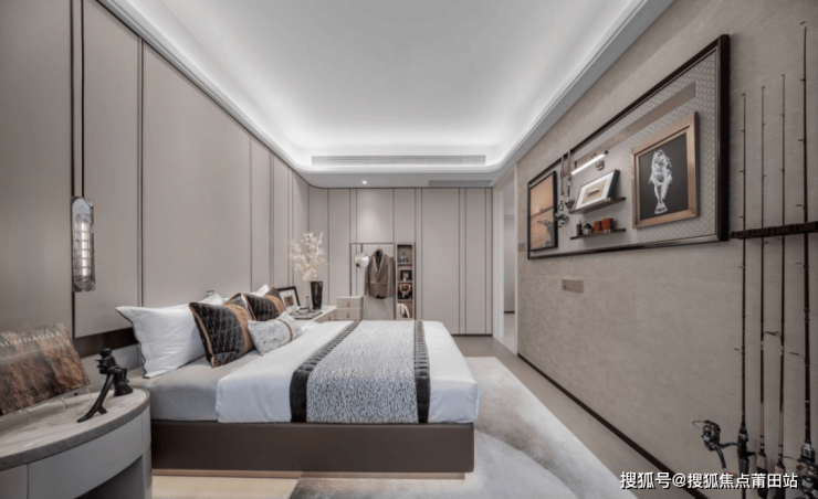 建面约193㎡的四房两厅三卫,处于湾海正席,最大化赋予海沧湾观景视野,真正做到了南面一线无遮挡湾海景观,每一户都能与湾海亲近接触,约20.5米阔绰面宽设计,让湾海全面屏在此呈现。约80㎡LDKB一体化公区配置,大气朗阔的多功能生活主场,可用于会客或家宴。客餐厅地面采用1800×900仿大理石云棕灰纹理瓷砖。无柱曲面主卧套房,270°转角观景凸窗,让湾海景观移步于日常起居。软装设计搭配皮革、木质、岩石、贵金属,运用不同材质的交叠,与空间体量呼应。