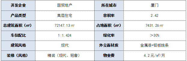 社区整体设计风格为现代风格,融合了厦门地域特色与现代美学精神。舒展的近70米主入口外立面,通过高奢定制材料、整石应用塑造细节,回应国贸地产“海洋生活美学”的美好愿景,搭配璀璨星河星空顶,彰显不凡气势。酒店式归家入户大堂,以层层递进的空间形式,彰显尊贵的对称仪式感。