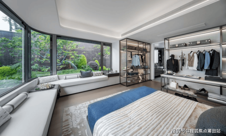 外立面擢取海洋生活美学配色,采用香槟金铝板线条+海浪灰金属涂料,搭配落地玻璃窗,局部配置隔声效果良好的三玻两腔夹胶中空玻璃,降低了周边的噪声影响。