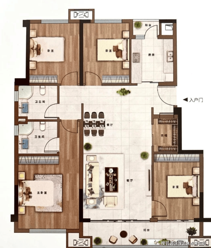 C户型:约130㎡四房两厅三卫